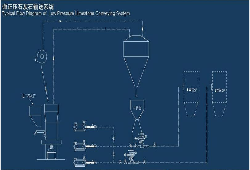 負壓輸送系統(tǒng)是利用低于1kg/cm2的氣體壓力,采用負壓(吸送式)方式并以較高的速度來拉動粉體物料使其通過管道輸送至灰?guī)?,這種輸送方式混合比較低,但是具有下料現(xiàn)場干凈的顯著優(yōu)點。