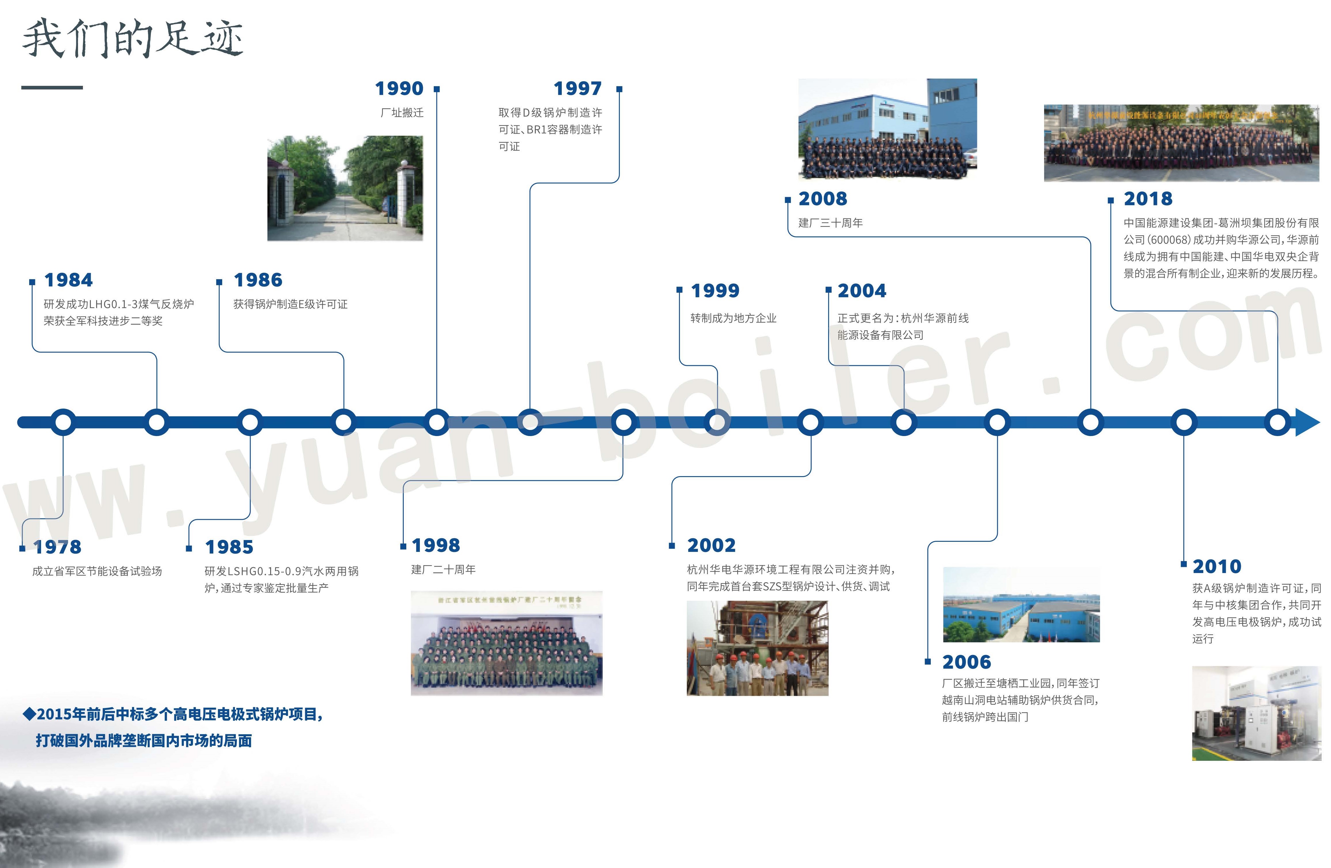 杭州華源前線能源設備有限公司(原杭州前線鍋爐廠)創建于一九七八年,原為解放軍總后勤部第九零八四工廠,1999年轉制到地方。公司控股股東杭州華電華源環境工程有限公司為中國葛洲壩集團(中國能源建設集團)與華電電力科學研究院(中國華電集團)雙央企聯合控股企業。廠區坐落在杭州市塘棲工業園,屬國家高新技術企業、浙江省熱能設備技術企業研究開發中心。持有A級鍋爐制造許可證壓力容器制造許可證、美國ASME鍋爐及容器設計制造證書、電氣CCC強制許可資質、歐盟CE認證、印度IBR認證;已通過GB/T19001-2016/ISO9001:2015質量管理體系、GB/T24001-2016/ISO14001:2015環境管理體系、GB/T28001-2011/OHSAS 18001:2007職業健康安全管理體系認證。依托國家級科研院所雄厚的研發、設計等綜合實力,我司是國內最早成功研發快裝鍋爐技術的鍋爐制造企業,是快裝鍋爐國家火炬計劃示范承擔單位。先后在電站輔助鍋爐、電極鍋爐等產品獲得專利30余項,自有的鍋爐自控軟件版權3項。