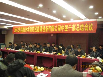 2012年12月29--30日,源牌集團(tuán)杭州華源前線能源設(shè)備有限公司2012年度中層干部總結(jié)會(huì)議在西港酒店召開。公司全體中高層管理人員、車間班組項(xiàng)目經(jīng)理與質(zhì)量管理小組成員共46人參加了總結(jié)會(huì)議。
