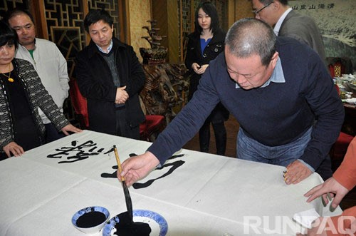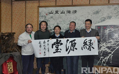 隨后,來賓一行在葉水泉的陪同下參觀了源牌綠色工坊。參觀過程中,葉水泉向來賓介紹了企業(yè)發(fā)展歷程、低碳路線和科研成果、生物質(zhì)能源創(chuàng)新開發(fā)及其應(yīng)用等情況。來賓頻頻點(diǎn)頭,大力贊賞源牌集團(tuán)的科研創(chuàng)新能力,并表示此行來訪收獲頗多,甚為值得。2014年第七屆杭州市民體驗(yàn)日正在火熱進(jìn)行中,源牌集團(tuán)有幸入選體驗(yàn)點(diǎn),歡迎廣大民眾踴躍投票并前來源牌綠色工坊參觀學(xué)習(xí)。 參觀結(jié)束后,葉水泉邀請馬孟杰揮毫潑墨,為源牌集團(tuán)題字“綠源堂”,馬孟杰渾厚、剛勁的筆風(fēng)讓在場的人贊不絕口。