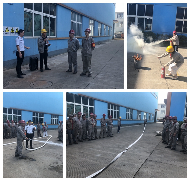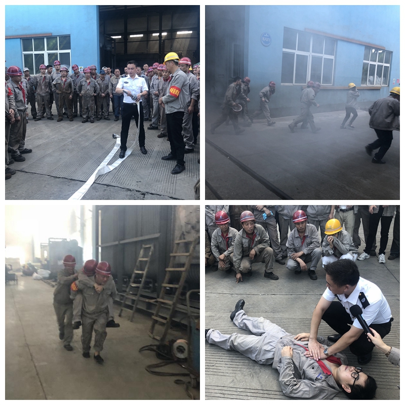當天的演習活動由生產部經理單永平擔任總指揮,員工們分為2個滅火組和1個救護組。當火災發生的警報響起時,滅火小組成員身手敏捷地手提滅火器、水帶、水槍趕到火災事發地,正確使用滅火器和消防栓對準著火點快速滅火;救護組快速趕到現場搶救受傷同事。所有人員都聽從指揮快速到達安全出口進行人員疏散。