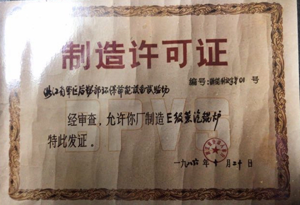1986年獲得首張鍋爐制造E級許可證;