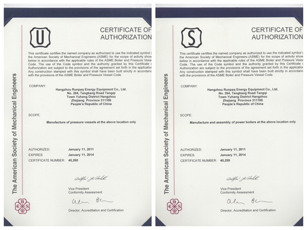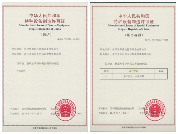 (A級鍋爐制造許可證、A2壓力容器制造許可證)