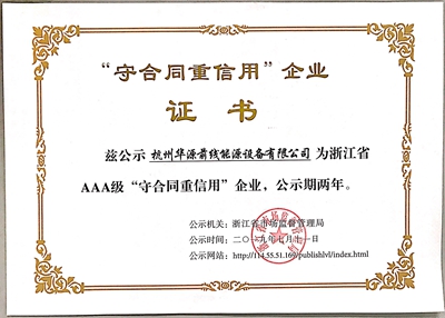 近日,杭州華源前線能源設(shè)備有限公司經(jīng)浙江省工商局審核認定被授予2019年浙江省AAA級“守合同重信用”企業(yè)稱號。