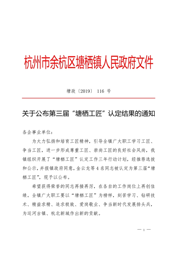 近日,第三屆“塘棲工匠”新鮮出爐,華源前線公司金云龍、陳華斌榮獲“塘棲工匠”稱號(hào)。