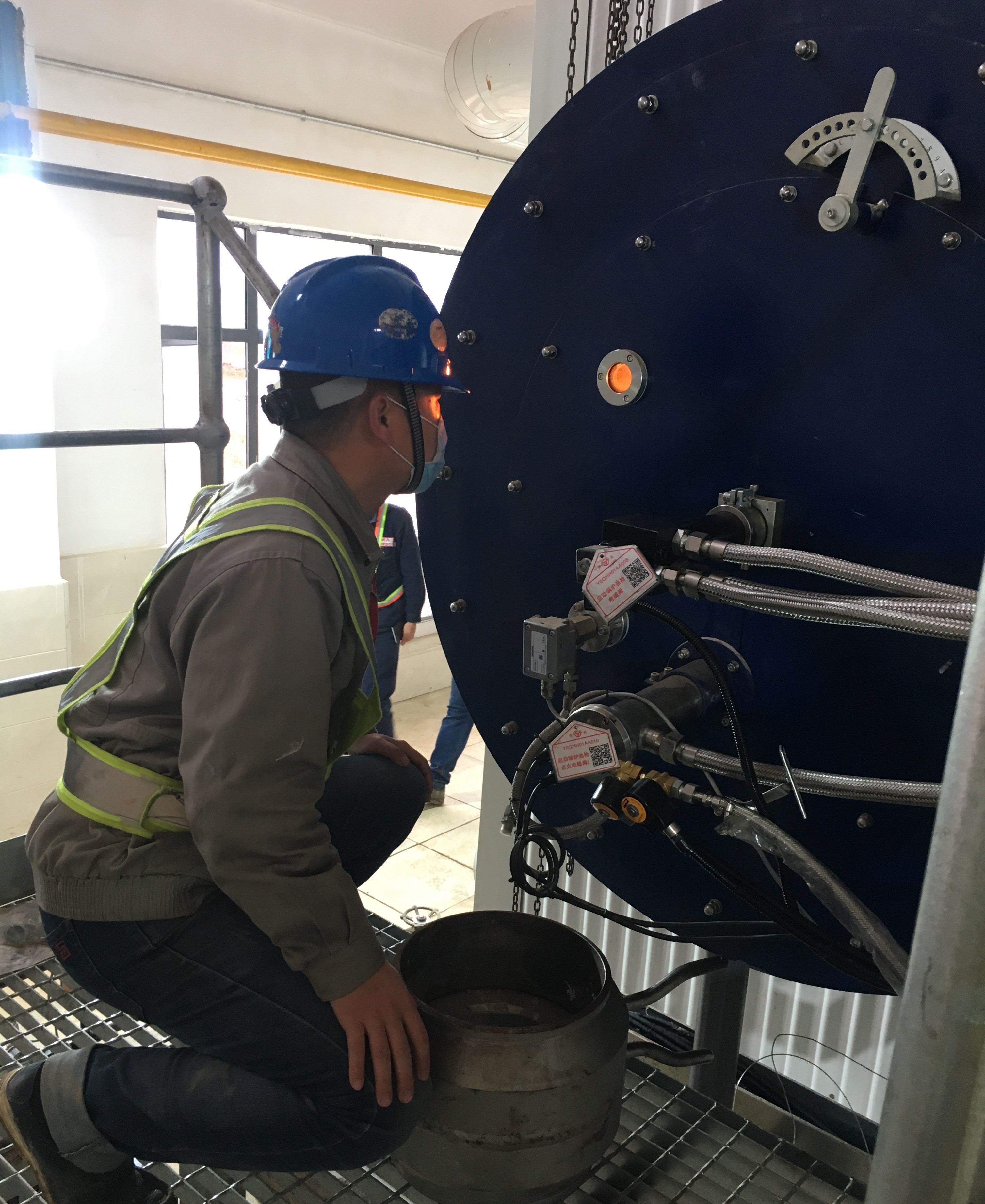 調(diào)試工程師阮拾萬在現(xiàn)場(chǎng)配合監(jiān)視鍋爐運(yùn)行參數(shù)