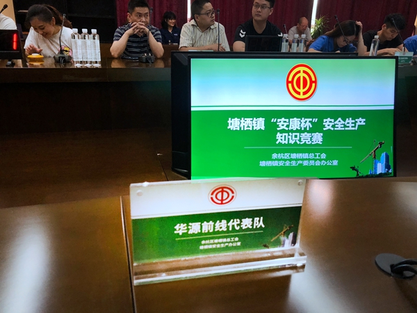 今年6月是全國第19個“安全生產(chǎn)月”, 主題為“消除事故隱患、筑牢安全防線”。6月16日塘棲鎮(zhèn)總工會舉辦“安康杯”知識競賽活動,方莎莎、王凌云和姜垚杰三位員工代表華源前線參賽。