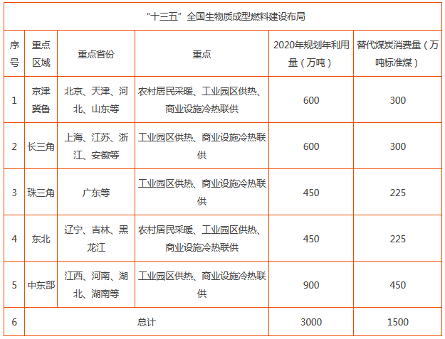 在具備資源和市場條件的地區,特別是在大氣污染形勢嚴峻、淘汰燃煤鍋爐任務較重的京津冀魯、長三角、珠三角、東北等區域,以及散煤消費較多的農村地區,加快推廣生物質成型燃料鍋爐供熱,為村鎮、工業園區及公共和商業設施提供可再生清潔熱力。
