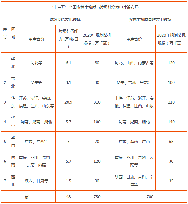 在農林資源豐富區域,統籌原料收集及負荷,推進生物質直燃發電全面轉向熱電聯產;在經濟較為發達地區合理布局生活垃圾焚燒發電項目,加快西部地區垃圾焚燒發電發展;在秸稈、畜禽養殖廢棄物資源比較豐富的鄉鎮,因地制宜推進沼氣發電項目建設。