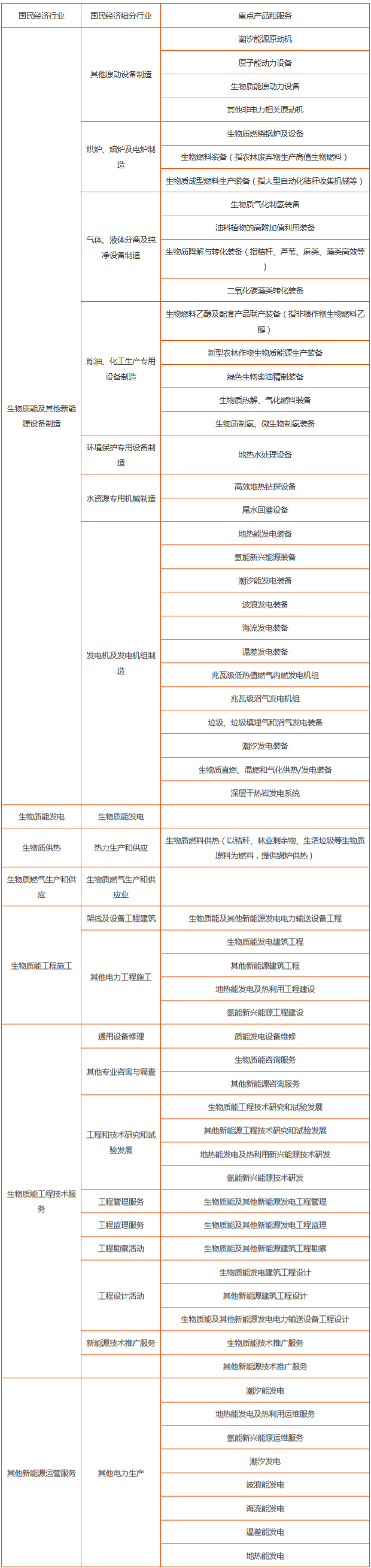 從具體國民經濟行業以及涉及到的重點產品和服務如下: