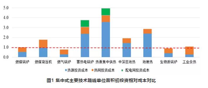 初投資成本方面,集中供暖方式中,燃?xì)忮仩t單位面積初投資低于燃煤鍋爐,生物質(zhì)鍋爐、工業(yè)余熱單位面積初投資與燃煤鍋爐相當(dāng),燃煤背壓機與中深層地?zé)釂挝幻娣e初投資是燃煤鍋爐的1.5~2.0倍,集中式電供暖投資成本最高,是燃煤鍋爐的3.5~5倍,主要是供熱系統(tǒng)造價比較貴,配電網(wǎng)改造成本在總成本中占比約為15%~20%;地巖熱單位面積投資成本高于中深層地?zé)幔侨济哄仩t的2.5~3.0倍。